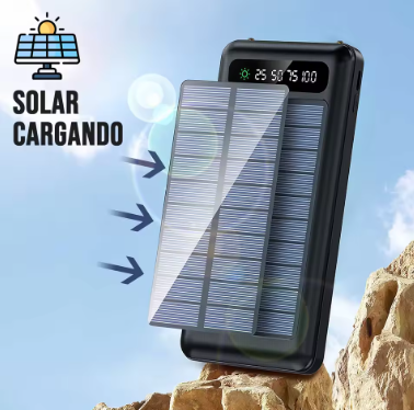 Esta Batería Externa Recargable con Panel Solar es la solución perfecta para mantener tus smartphones y tablets cargados sin depender de una toma de corriente.